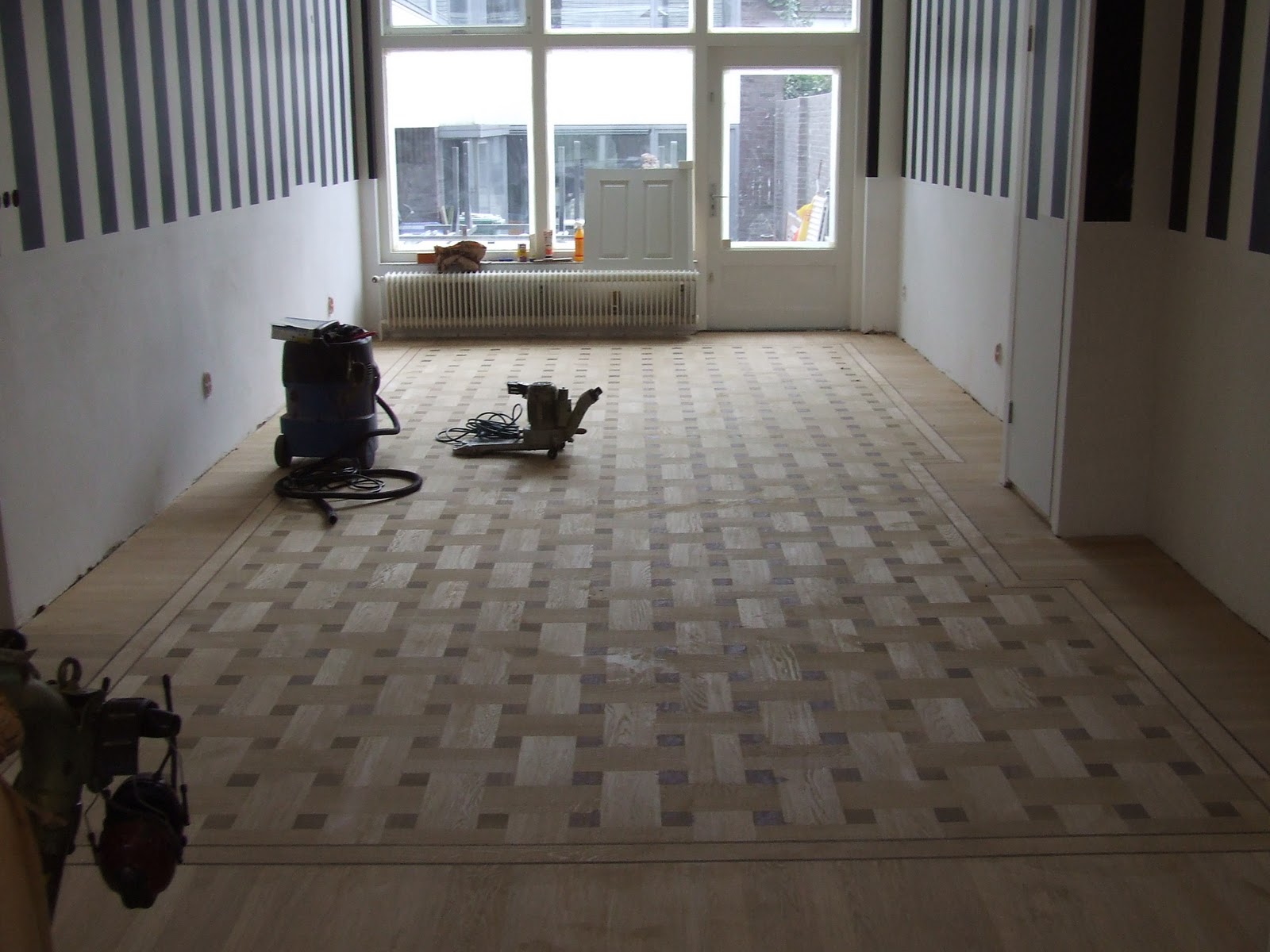 De parketlegger is vijf dagen bezig geweest met leggen, schuren en oliën.